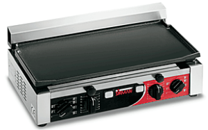 Аппарат оснащен электромеханической панелью управления, на которой имеется поворотный тумблер для регулирования температуры нагрева рабочей поверхности и световой индикатор, который гаснет, когда поверхность достигает заданной температуры.