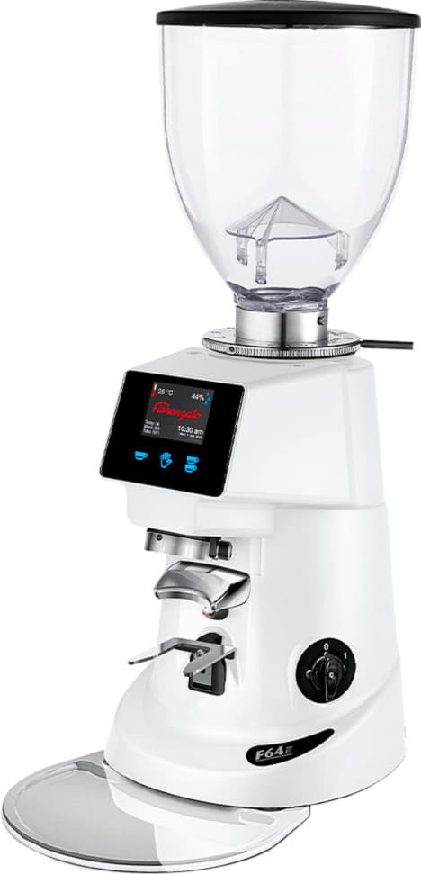 Кофемолка автоматическая, микрометрическая регулировка помола с помощью зажимного кольца. Модель оснащена сенсорным дисплеем, системой порционной дозировки,