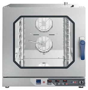 <comment>В модели предусмотрено 7 уровней и инжекторное пароувлажнение. Очень качественный пароконвектомат, с двумя вентиляторами для принудительной конвекции. Как раз подходящий для нас тип противней. Еще удобно, что есть подключение и на 220, и на 380 В - вдруг придется переезжать, проблем с подключением не будет. </comment>