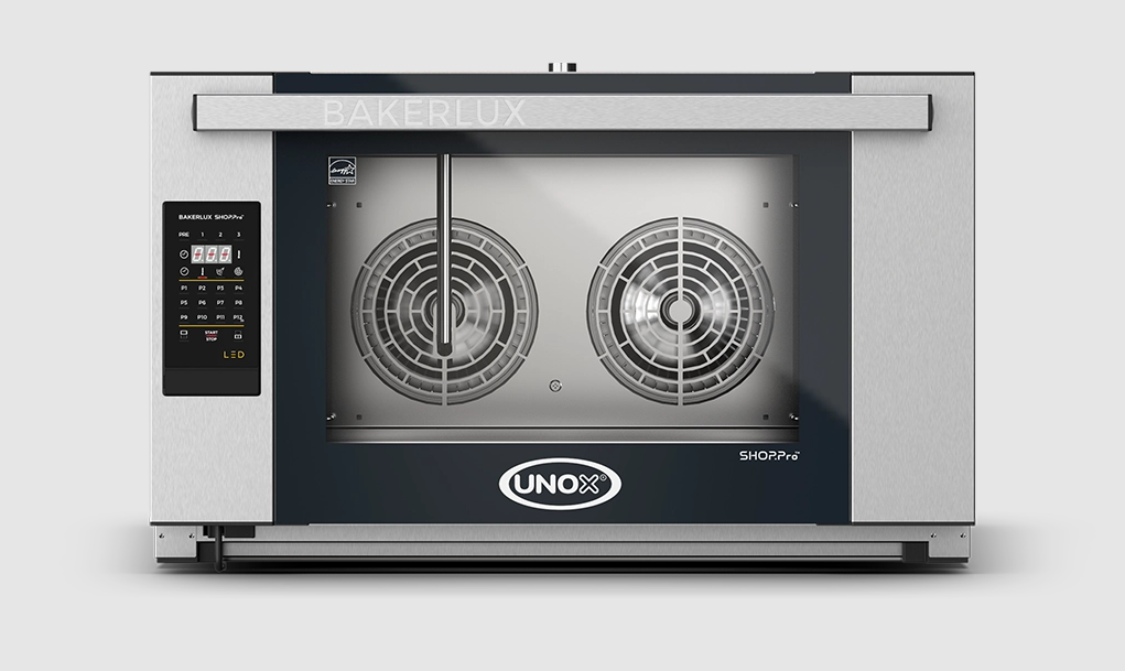 Печь вмещает до четырех противней размером 600x400 мм, что позволяет готовить одновременно несколько порций. Управление устройством осуществляется через панель с 7-сегментным дисплеем, что обеспечивает интуитивно понятный доступ ко всем функциям.