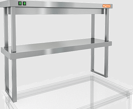 Габариты полки составляют 1000 мм в длину, 400 мм в глубину и 800 мм в высоту, что делает её компактной и удобной для использования в различных условиях. Верхний уровень предназначен для подогрева, в то время как нижний уровень остается нейтральным, что позволяет эффективно организовать пространство для сервировки.