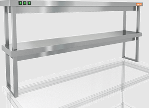 Полка тепловая HiCold TP2К-17/3 представляет собой настольное устройство с двумя уровнями, идеально подходящее для профессионального использования. Верхний уровень оснащен подогревом, в то время как нижний уровень остается нейтральным.
