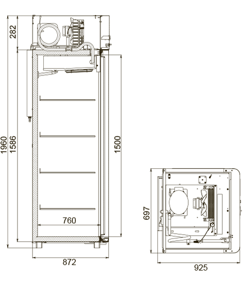 - Габариты: 697 мм (ширина) x 925 мм (глубина) x 1960 мм (высота)