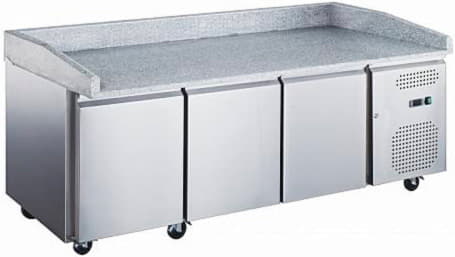 Стол для пиццы Hurakan HKN-PZG3 предназначен для раскатки теста, хранения продуктов и обработки ингредиентов для приготовления пиццы на рабочей поверхности.