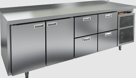 Корпус и столешница выполнены из нержавеющей стали, а толщина теплоизоляции составляет 50 мм, что обеспечивает отличные теплоизоляционные свойства. Охлаждение осуществляется динамическим способом, а оттайка – в автоматическом режиме. Удобная электронная панель управления позволяет легко настраивать необходимые параметры.