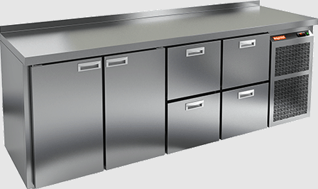 Стол выполнен из нержавеющей стали, как корпус, так и столешница, что гарантирует долговечность и легкость в уходе. Толщина теплоизоляции составляет 50 мм, что способствует эффективному удержанию холода. Охлаждение осуществляется динамическим способом, а оттайка – в автоматическом режиме, что упрощает эксплуатацию.