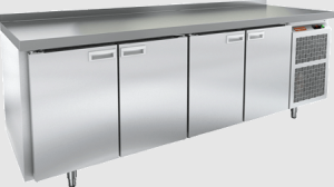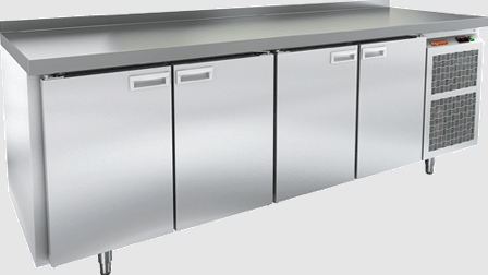 Электронная панель управления обеспечивает простоту в эксплуатации, а автоматическая система оттайки упрощает обслуживание. Стол оснащен четырьмя полками размером 530х325 мм (GN 1/1), что позволяет удобно организовать пространство для хранения. Высота рабочей поверхности составляет 850 мм, а размеры стола — 2280 мм в ширину и 700 мм в глубину.