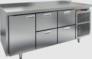 Морозильный стол оснащен динамической системой охлаждения и автоматической оттайкой, что упрощает его эксплуатацию. Электронная панель управления позволяет легко настраивать необходимые параметры. В комплект входит одна полка размером 530х325 мм (GN 1/1), а также регулируемые по высоте ножки и автоматические доводчики дверей с фиксатором открытого положения. Легкозаменяемые магнитные уплотнители обеспечивают надежную герметичность.