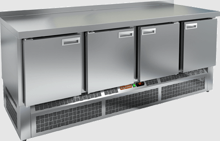 Температурный диапазон работы устройства варьируется от -10 до -18 градусов Цельсия, что гарантирует надежное сохранение свежести продуктов. Холодильный агрегат расположен в нижней части конструкции, что способствует оптимальному распределению холода. Стол выполнен в соответствии с гастрономическими стандартами, что делает его идеальным для профессионального использования.