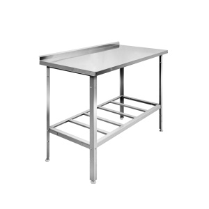 Каркас стола изготовлен из оцинкованной стали, что гарантирует долговечность и устойчивость к коррозии. Стол также оборудован полкой-решеткой, что увеличивает функциональность. Ножки конструкции регулируются по высоте, что позволяет компенсировать неровности пола при установке.