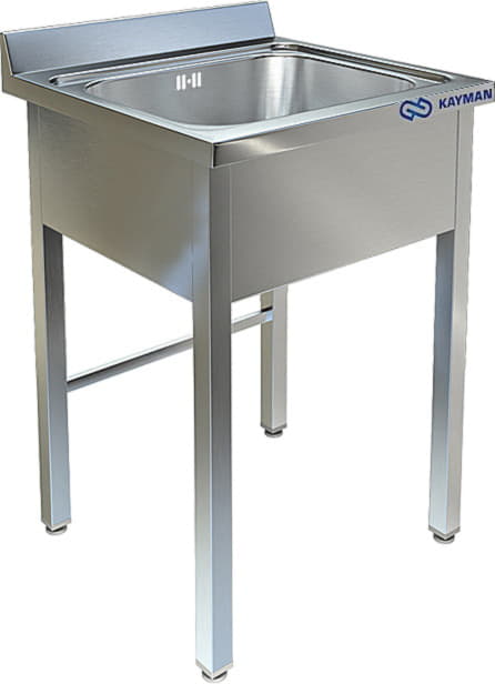 Ванна моечная одинарная на каркасе из трубы нержавеющей стали AISI 430, емкость цельнотянутая.