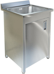 Ванна моечная одинарная каркасе из нержавеющей стали AISI430 с распашной дверкой, емкость цельнотянутая.