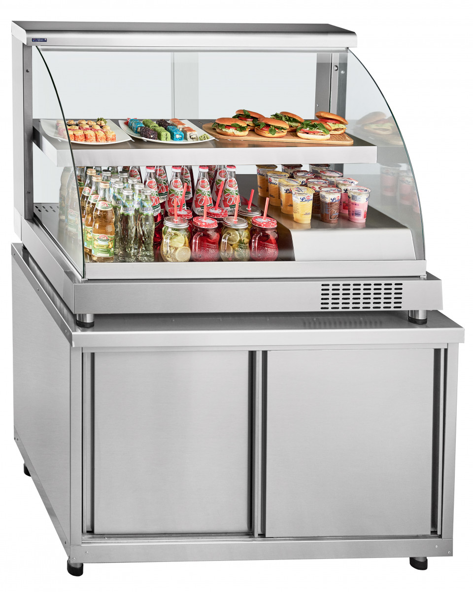 Система динамического охлаждения с вентилятором обеспечивает равномерное распределение температуры внутри полезного объема, что гарантирует сохранность продуктов. Устройство оснащено электронным блоком управления, который позволяет точно настраивать и поддерживать необходимую температуру. Холодильный агрегат, основанный на компрессоре Danfoss, использует хладагент R404a, обеспечивая диапазон температур внутри витрины от +5 до +15 °C. При этом она функционирует при температуре окружающей среды от +12 до +32 °C.