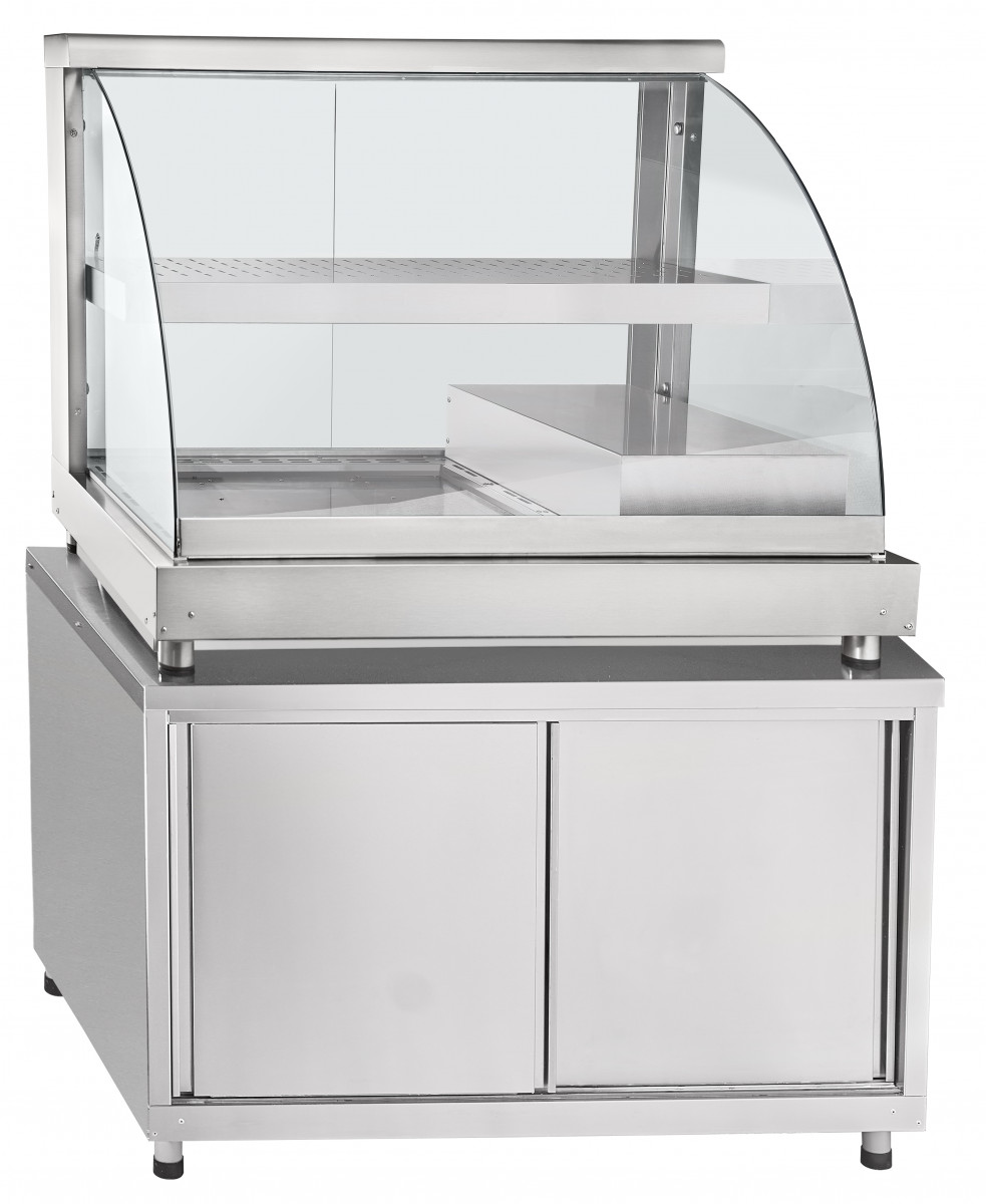 Конструкция полки, стоек и основания выполнена из нержавеющей стали AISI 304 толщиной 1 мм, что обеспечивает долговечность и легкость в уходе. Размеры полки составляют 1043х372х60 мм, а сквозная перфорация обеспечивает равномерное распределение температуры внутри витрины. Боковые стенки и раздвижные дверцы изготовлены из закаленного стекла толщиной 5 мм, а со стороны покупателя используется гнутое закаленное стекло толщиной 6 мм.