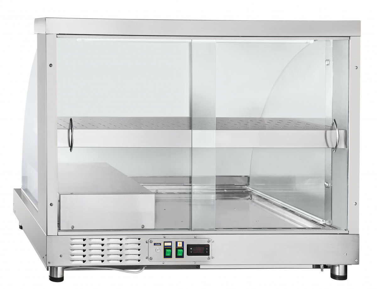 Витрина имеет естественную систему оттайки и оборудована двумя раздвижными дверцами, которые открываются со стороны персонала. Для освещения используются две светодиодные лампы, расположенные под полкой и под верхней крышкой, что создает дополнительный эффект презентации.