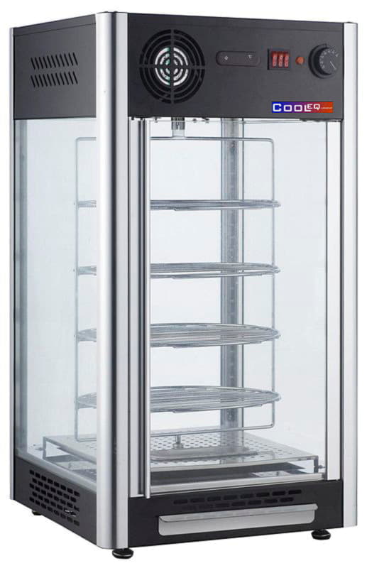 настольный холодильная витрина COOLEQ CW-108 предназначена для хранения и демонстрации продуктов с одновременным их охлаждением. В витрине предусмотрены четыре вращающиеся круглые хромированные полки, на которых можно хранить пиццу, торты, пирожные, десерты и т.д. Витрина оснащена LED - подсветкой с двух сторон.