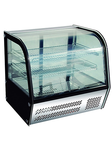 Витрина GASTRORAG HTR160 с выпуклым передним стеклом предназначена для демонстрации и сохранения свежести десертов, холодных закусок и блюд. настольный витрина имеет объем 160 л и поддерживает температуру в диапазоне 0…+12оС. Работа устройства основана на компрессорном принципе охлаждения. Витрина оснащена 2 раздвижными дверцами и 2 хромированными полками-решетками, а также подсветкой. Модель выполнена из прочного стекла и окрашенной стали черного цвета.