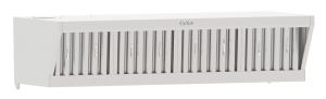 Габаритные размеры зонта составляют 1590 мм в ширину, 1260 мм в глубину и 408 мм в высоту, а его вес составляет 113 кг. Устройство устанавливается пристенным образом, что позволяет сэкономить пространство на кухне.